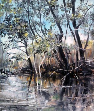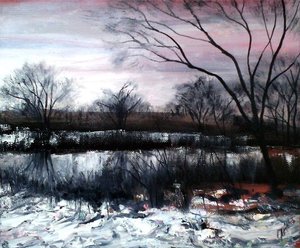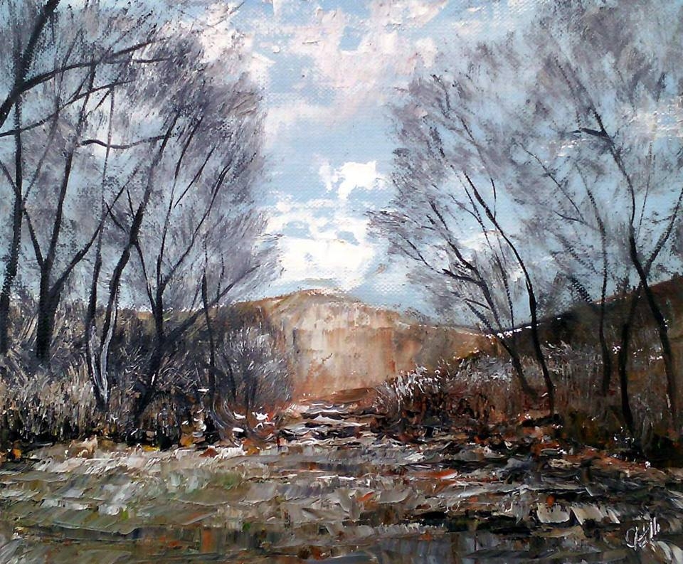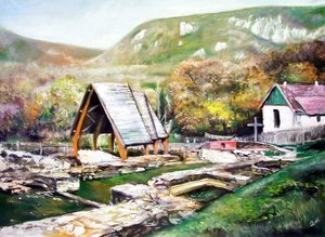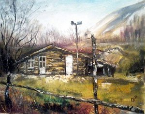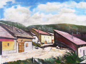 Kesztölci pincék reggeli fényben (35x50 olaj)