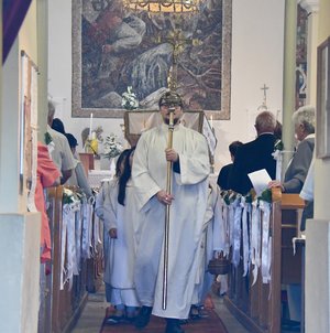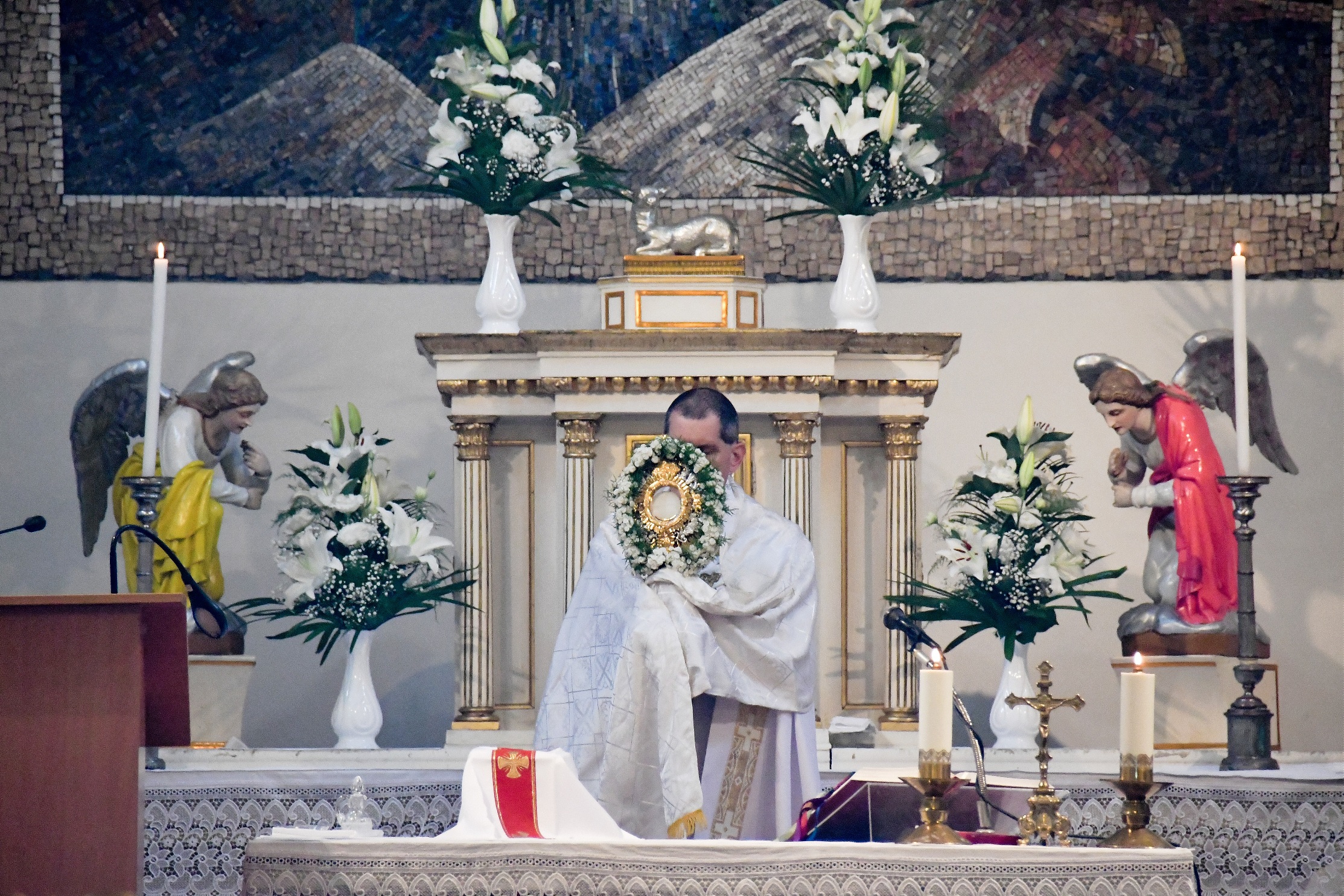 Vasárnap szentmisével és körmenettel ünnepelték az Úr napját a kesztölci Római Katolikus Templomban. Juhász Sándor felvételei.
